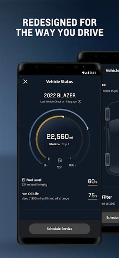 Check your vehicle’s status to monitor fuel level, oil life, tire pressure and more, making it easy for you to stay on top of your vehicle’s health and schedule service with your participating Dealer without leaving the app.