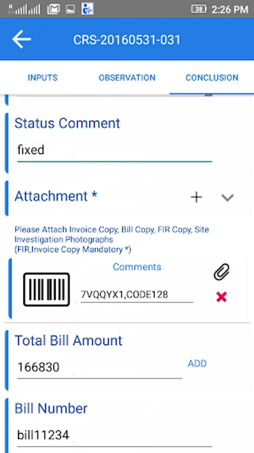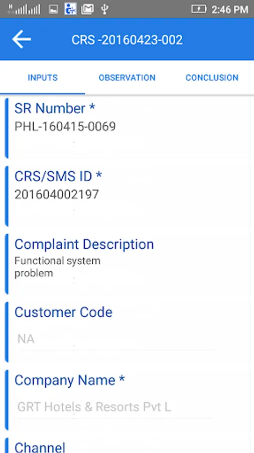 3. Scheduled and assigned complaint are provided in real time, and displayed for associated set of actions to include accept, reject with comments, report, complaint based status updates, observations capture accompanied by soft billing and capture details on conclusions with customer satisfaction score, customer and service technician signatures, field information report, field failure photos, barcodes and parts/services usage.