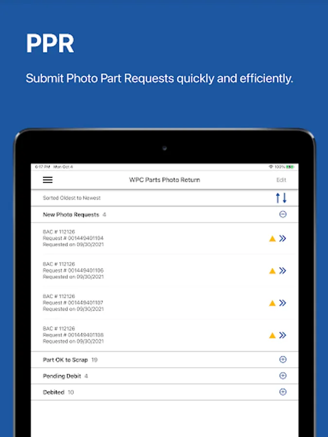 • Use photos to improve efficiency of the Part Return Process (PPR)