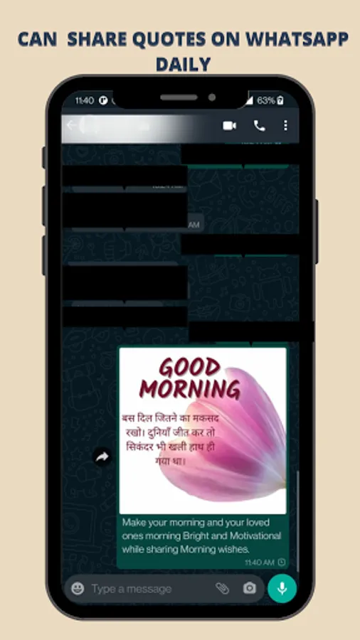 This app contains number of good morning wishes images , good morning romantic quotes , good morning happy quotes and inspirational quotes that you can send to your family, friends and your loved once in social media. This inspirational quote motivates you daily and give positive vibes. This app also contains good morning wishes in Hindi.