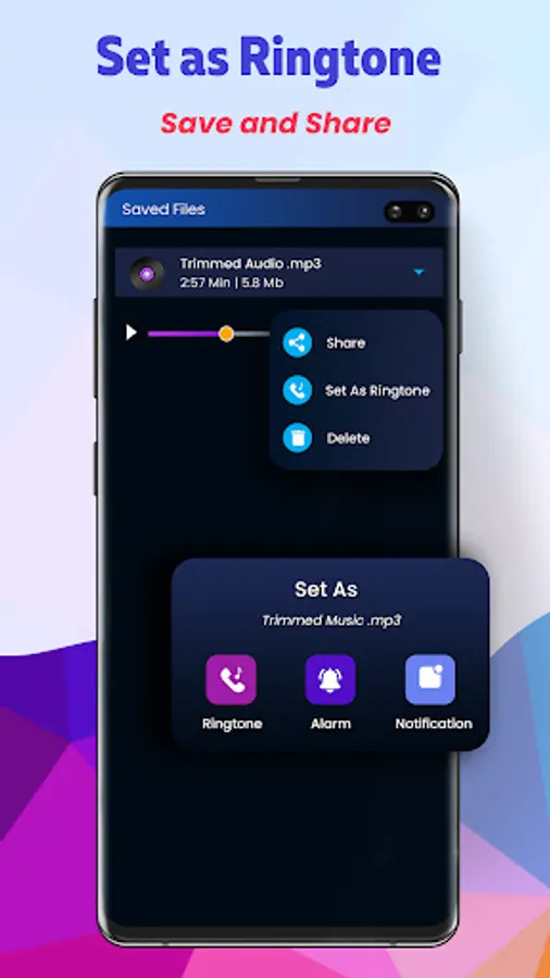 * Save the files as Ringtone/Alarm/Notification tone