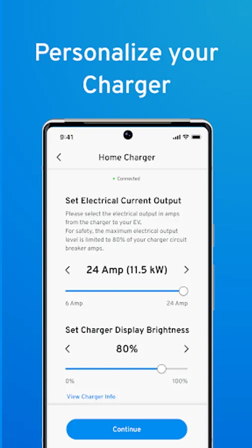Set your power level. Don’t need a quick charge? Adjust your current settings down from the max 11.5kW. Protect the grid when demand is highest.