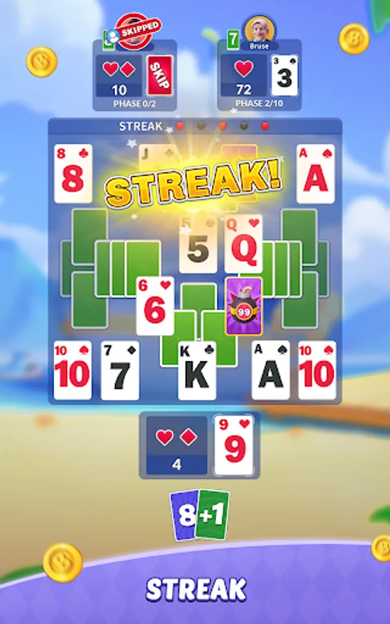 💎Get into the action and test your strategies! Challenge opponents with your action cards in solitaire to win rewards! Even if your opponent has completed their phases, you can keep pace by completing your phases before they clear their hand. Challenge yourself with a fun area adventure and Tripeaks Solitaire puzzles.