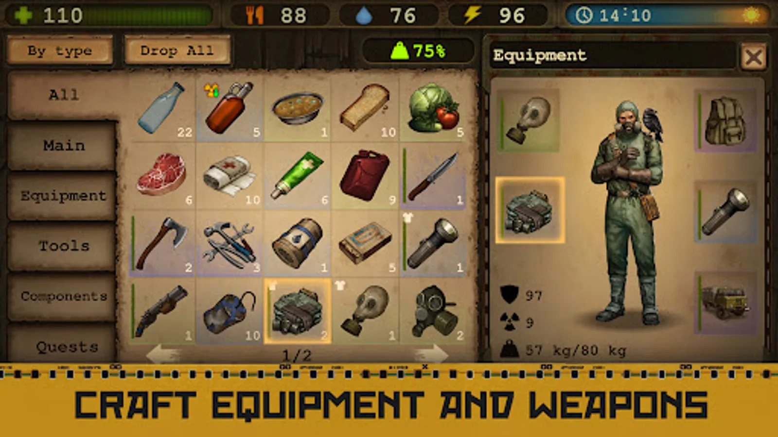 Day R features over 100 crafting recipes, multilevel systems for character leveling. Enjoy top action RPG mechanics as you acquire skills and ammunition. You'll need to learn not only mechanics and chemistry but also defense from mutants and zombie and fortress building for the ultimate shelter survival.