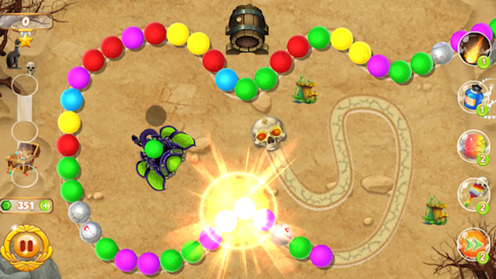In this zoooma game your main goal is to use marble shooter to clear all the marbles before they reach the end of the marble path, and achieve marbles and booster as many as possible to get highest scores.