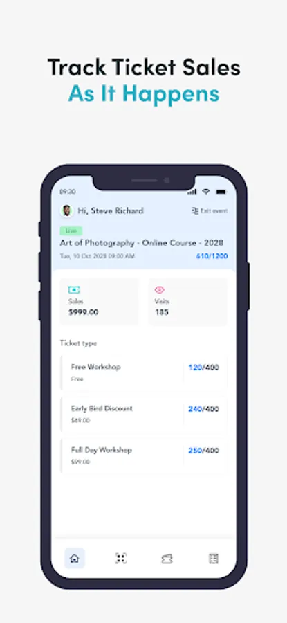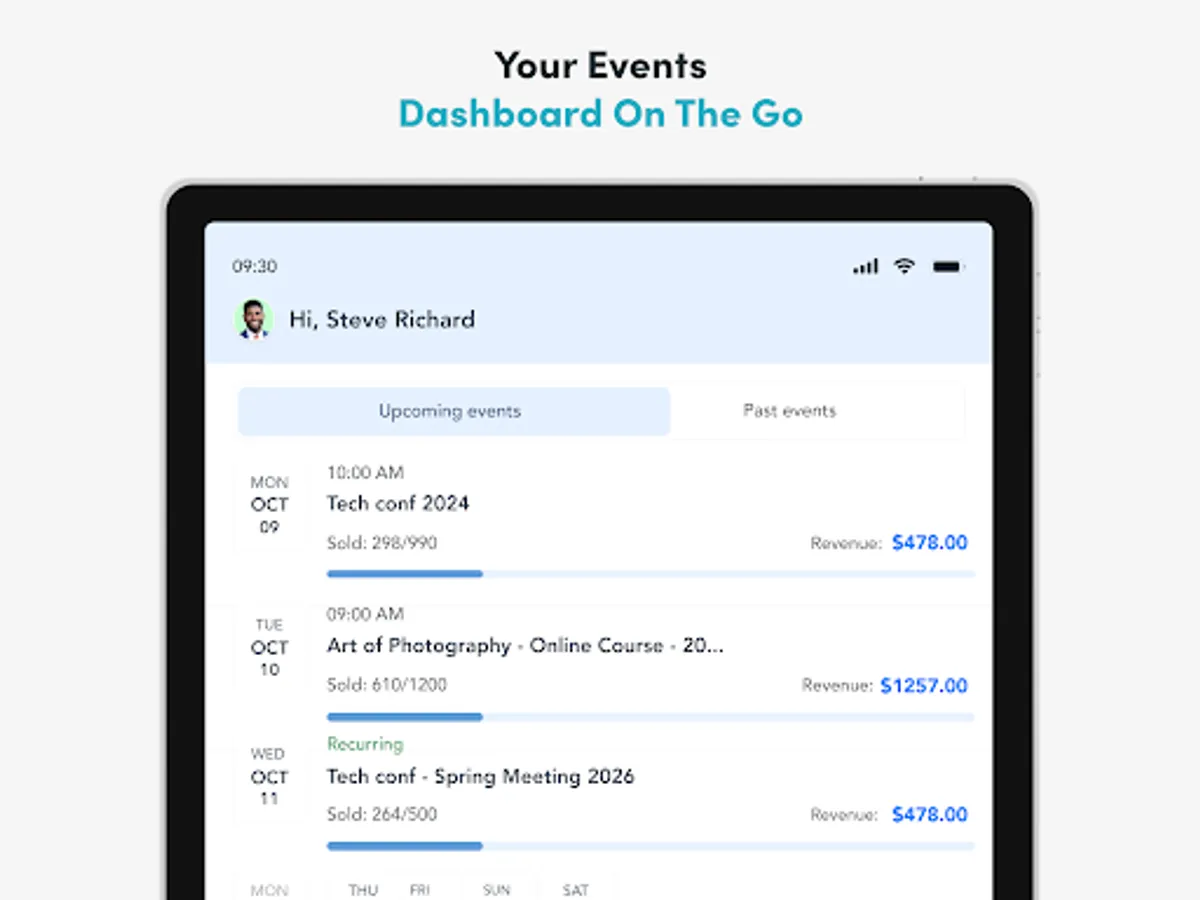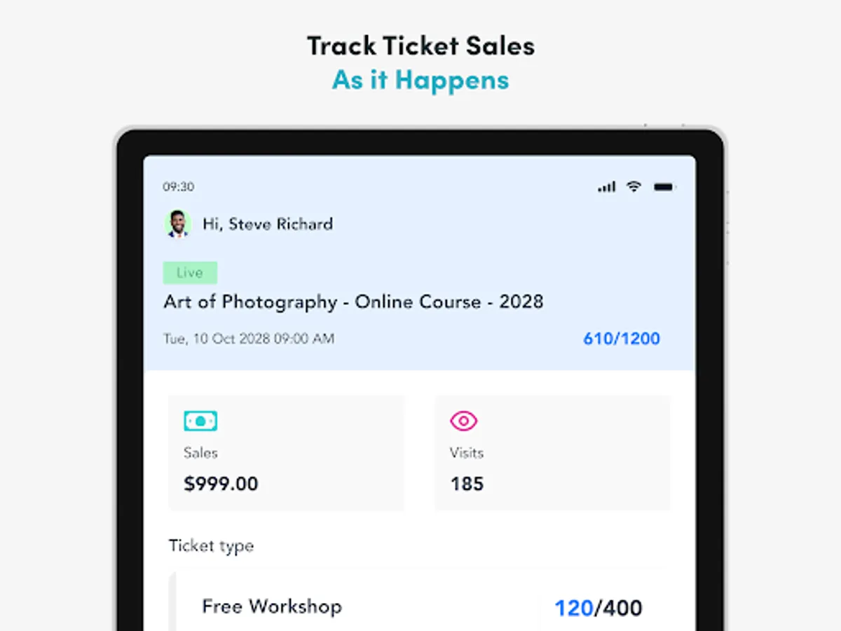 Event organizers can now monitor real-time ticket sales, revenues, check-in attendees, track attendance live, quickly sell tickets and merchandise on-site with the mobile app.
