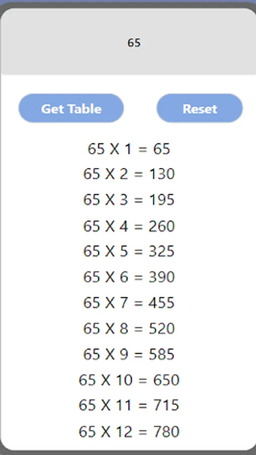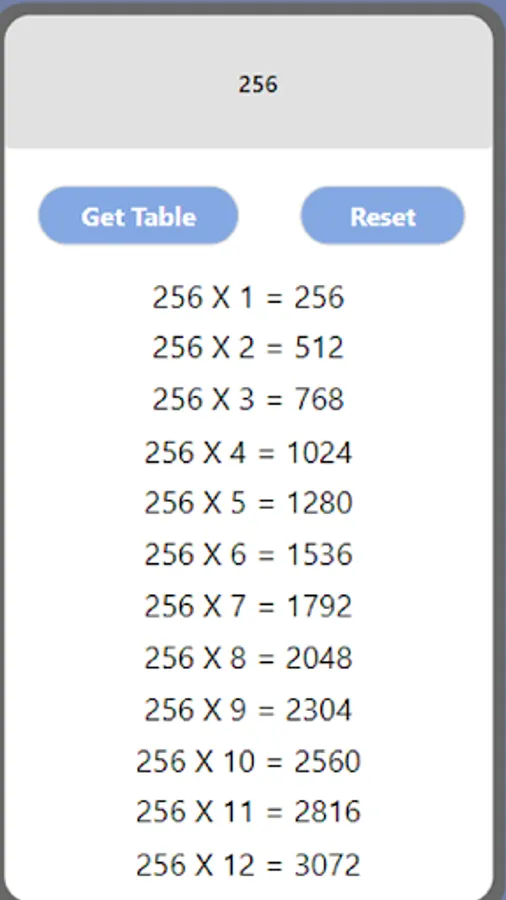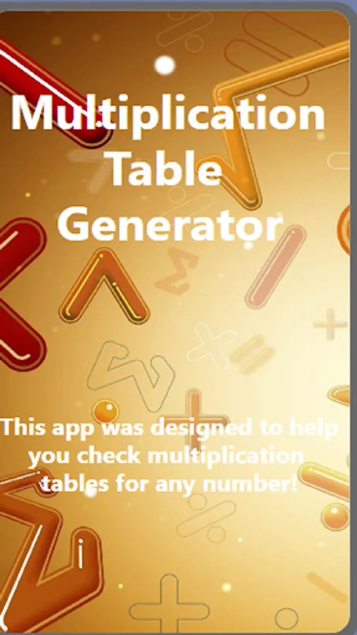 This app will let you check what the multiplication tables are for any number. It will multiply your number from 1-12 and give you the equation and solution for it.