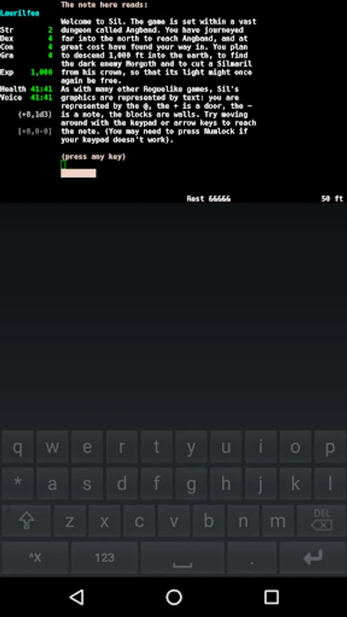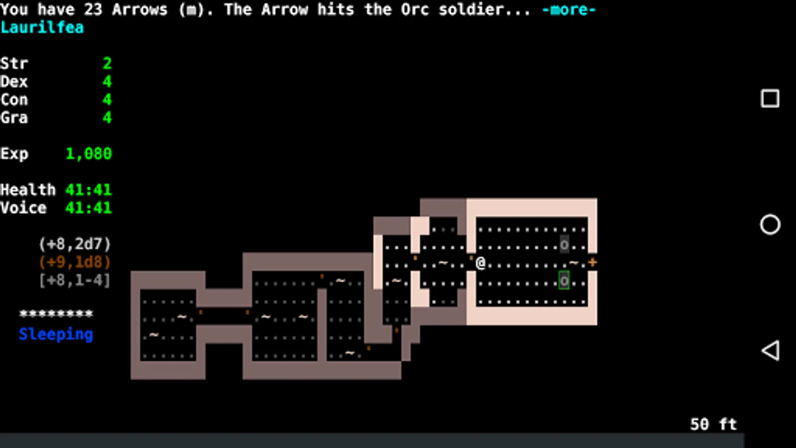 Sil comes from a tradition of role-playing games known as roguelikes. They stem from a game called Rogue that was written before computers had graphics and instead used symbols on the screen to represent a dungeon filled with monsters and treasure, that was randomly generated each time you played. Rogue also had ‘permanent death’: you have only one life and must choose wisely lest you have to start again. Finally, it had a system of unidentified items whose powers you must discover for yourself. Sil inherits all of these features, though it is much more advanced in many ways.