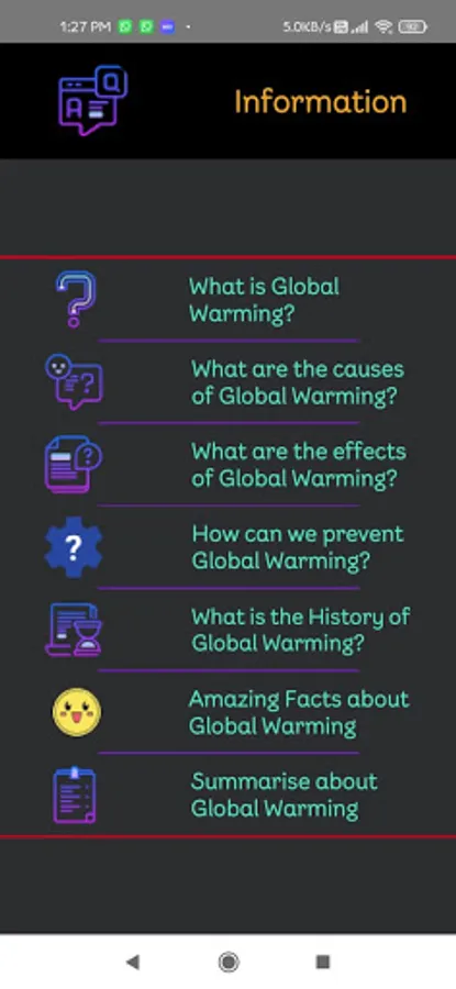 - A facility in the app to ask any query regarding Global Warming. My Team will respond to the said query at the earliest.