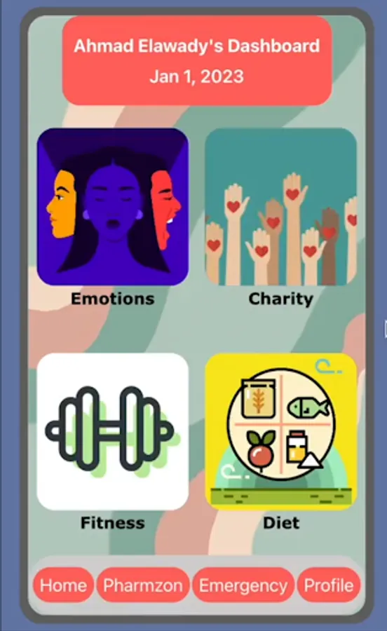 1- Emotions: it starts by snapping a photo of the user's face asking them to express their feelings. Then the API detects the users mood and based on that it prompts them with a message and two options: