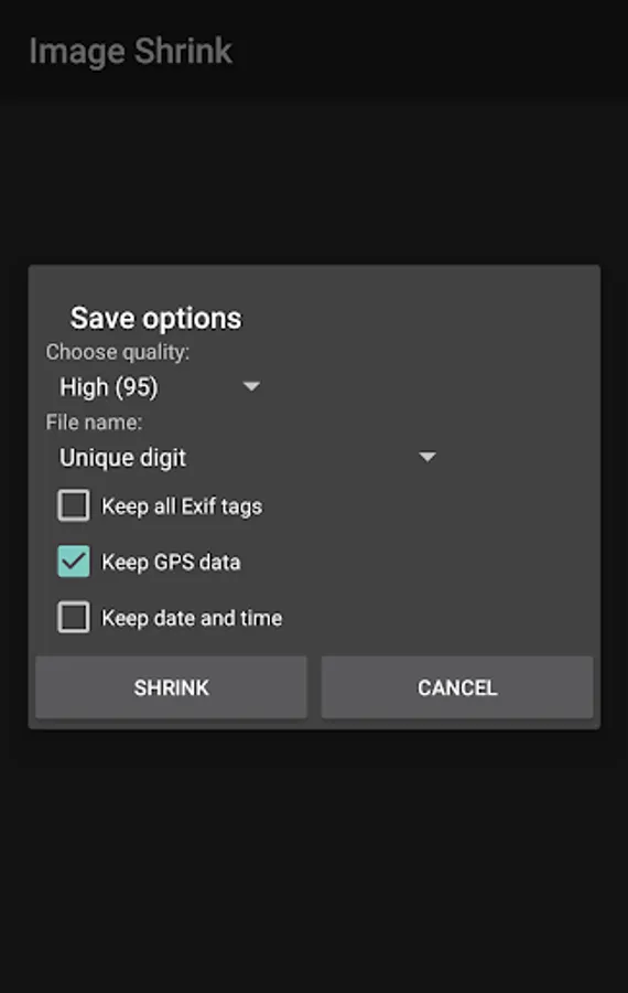 Remove time and location information from photographs to protect your privacy, or save the Exif and GPS position to keep information in tact when scaling images down.
