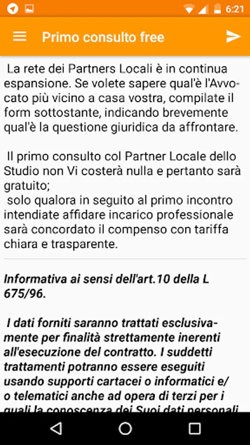 - FIRST CONSULTING (FREE) service through which you can make an appointment with one of the Local Partners of the Firm, located throughout Italy. Normally the first consultation is free.
