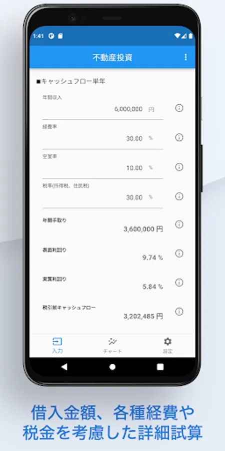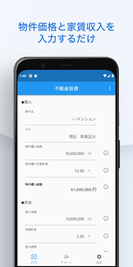 まずは物件購入価格と年間家賃収入予想を入力するだけ!