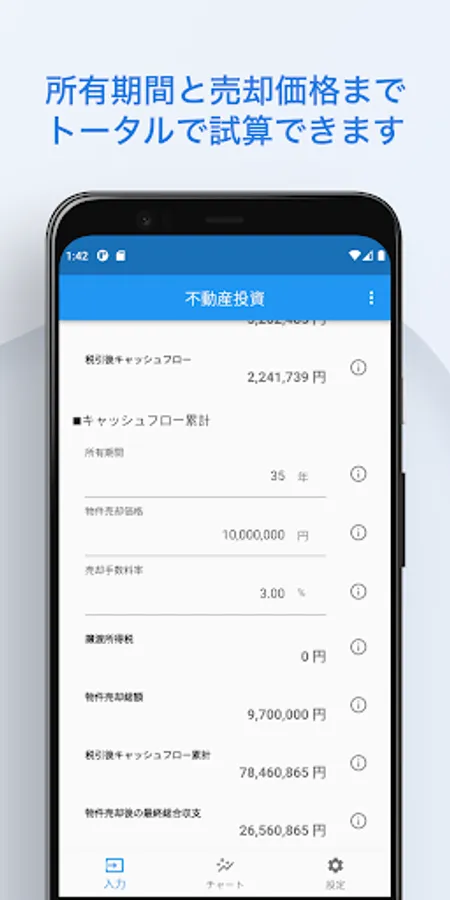 単年の利回りとキャッシュフローだけでなく、物件を購入してから売却するまで、トータルでシミュレーション!