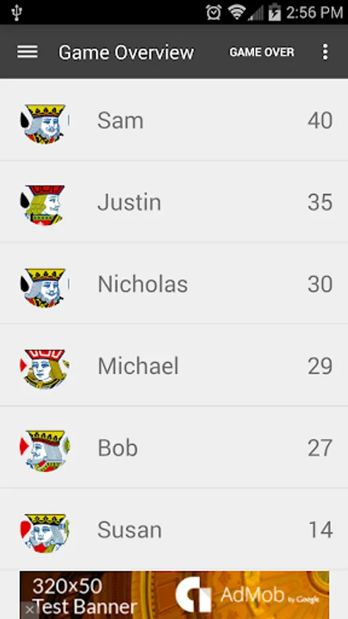 Game On will help you to get more out of playing cards with your friends and family. No longer will you have to designate someone to keep score and trust that they’re honest. No more do you have to worry about paper and pencil and pesky arithmetic. Game On will make your game experience easier and more enjoyable.
