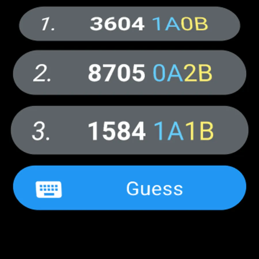 After the game starts, you need to enter Numbers. When you press Done icon, the app will send back the result (e.g. 1A3B).