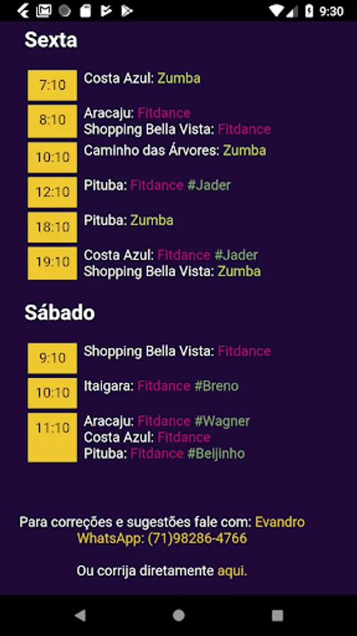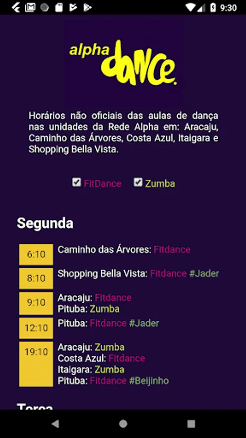 Unofficial hours of dance classes at the units of Rede Alpha in: Aracaju, Tree Path, Costa Azul, Itaigara and Shopping Bella Vista.