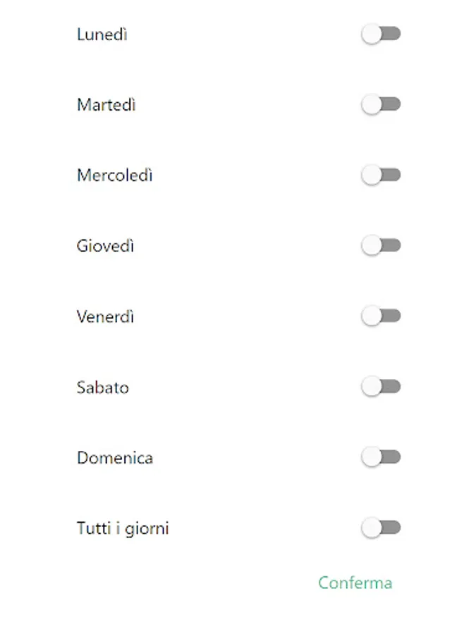 This app lets you set Visioni Olfattive's scent diffusers so to be activated following a weekly schedule.