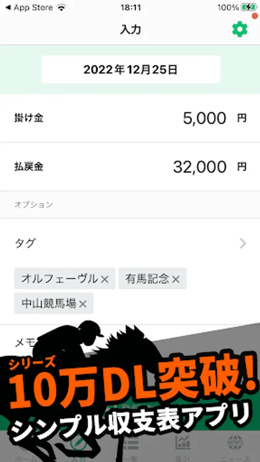 The minimum required items! Just enter the date of the horse race and the amount of income and expenditure.