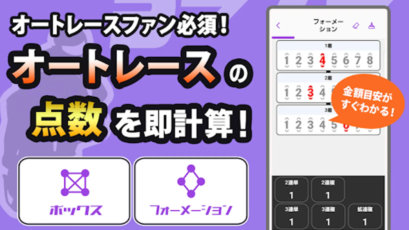 With the auto race score calculation app, you can predict what to buy with just one smartphone and calculate quickly!