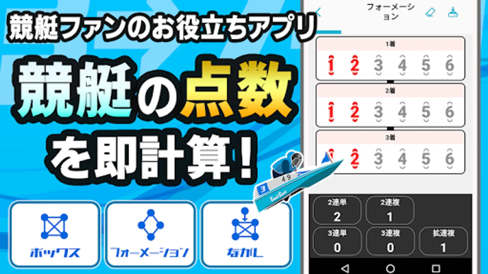 You can calculate points quickly with this free app, so you can smartly decide on the spot to buy a boat ticket even if you are at the boat racetrack!