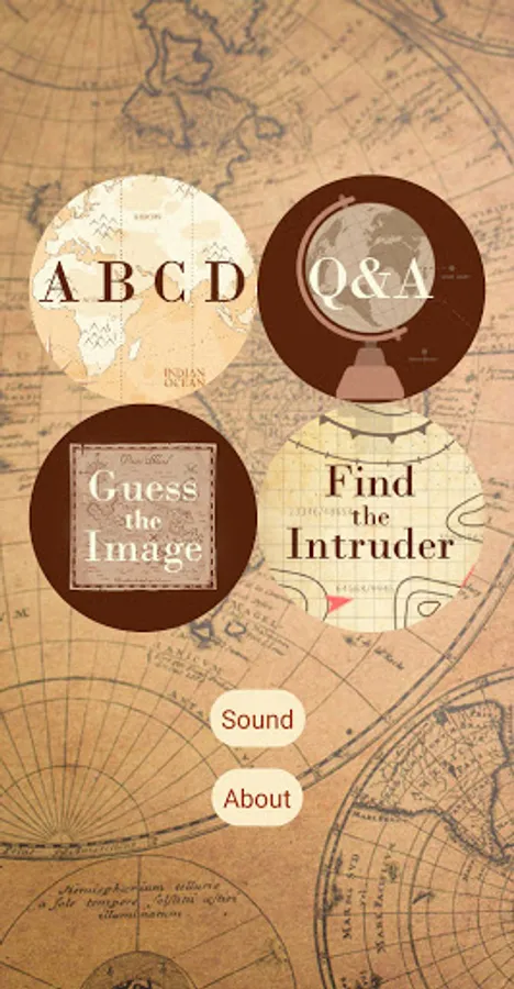 The application contains 4 different geography quizzes. Every quiz has 30 questions.