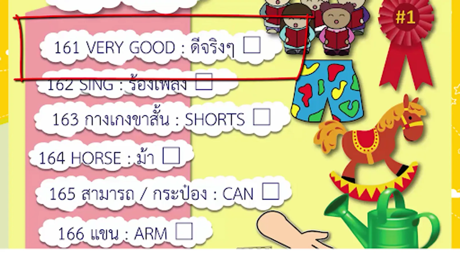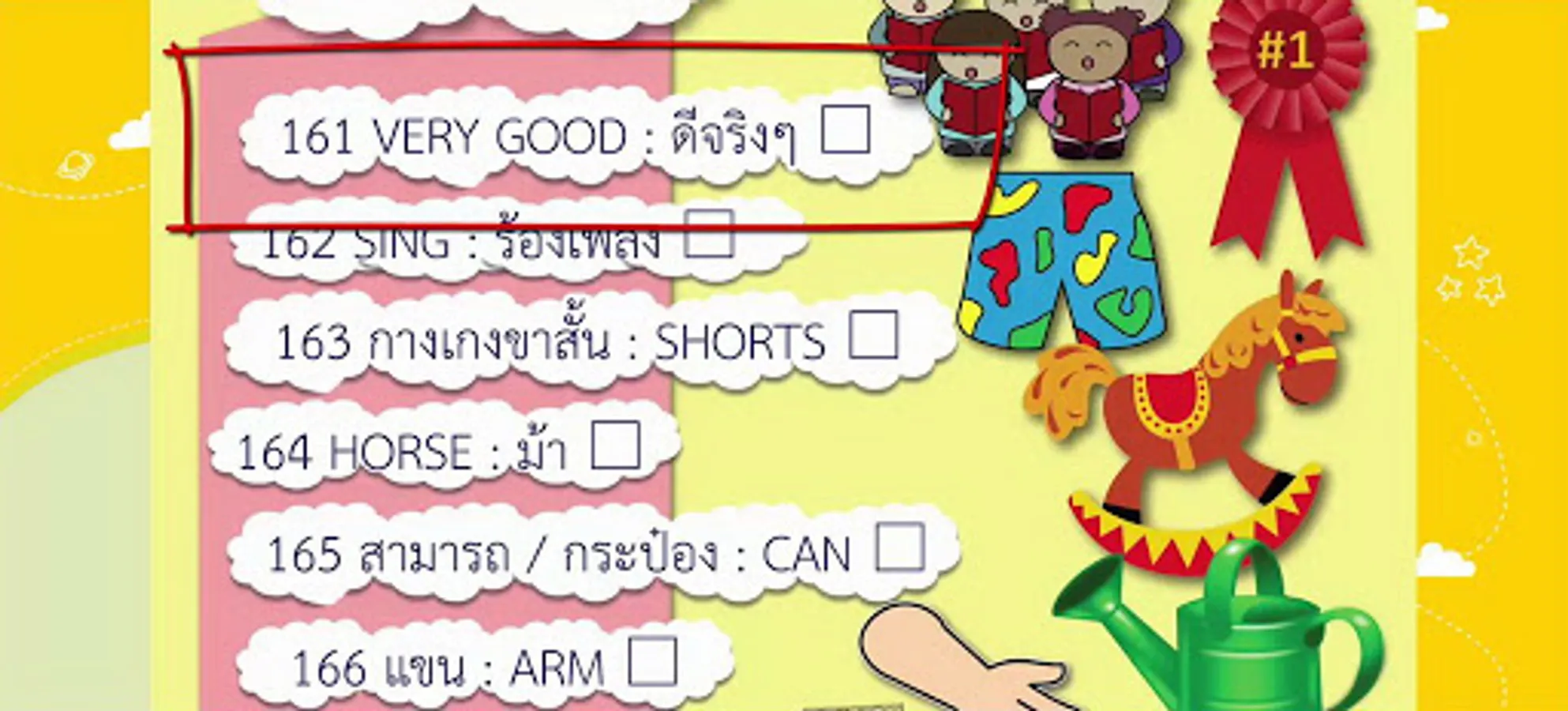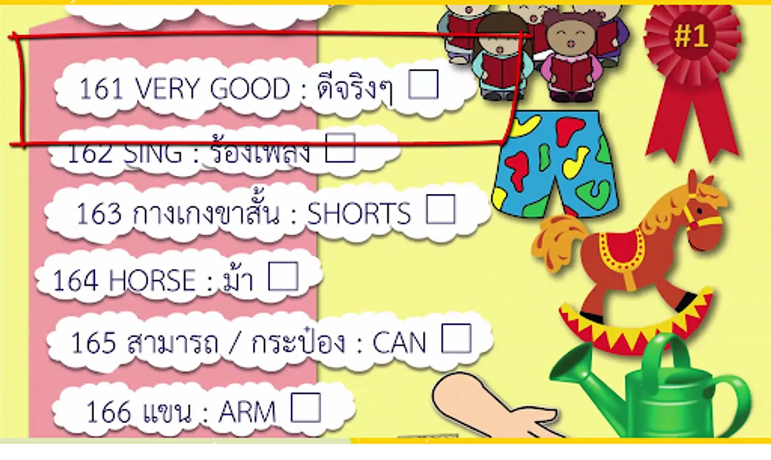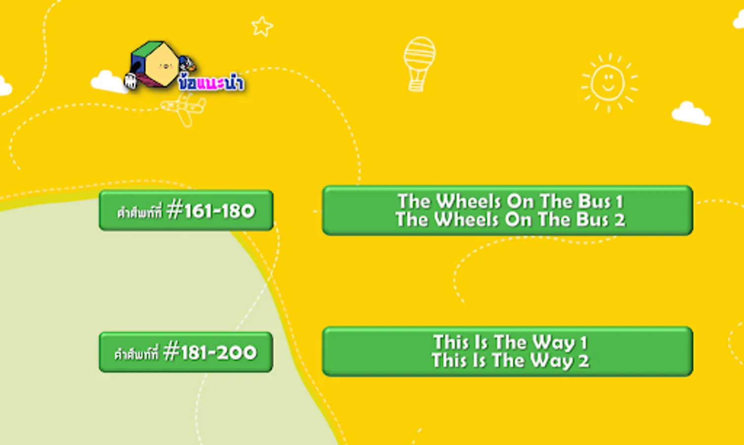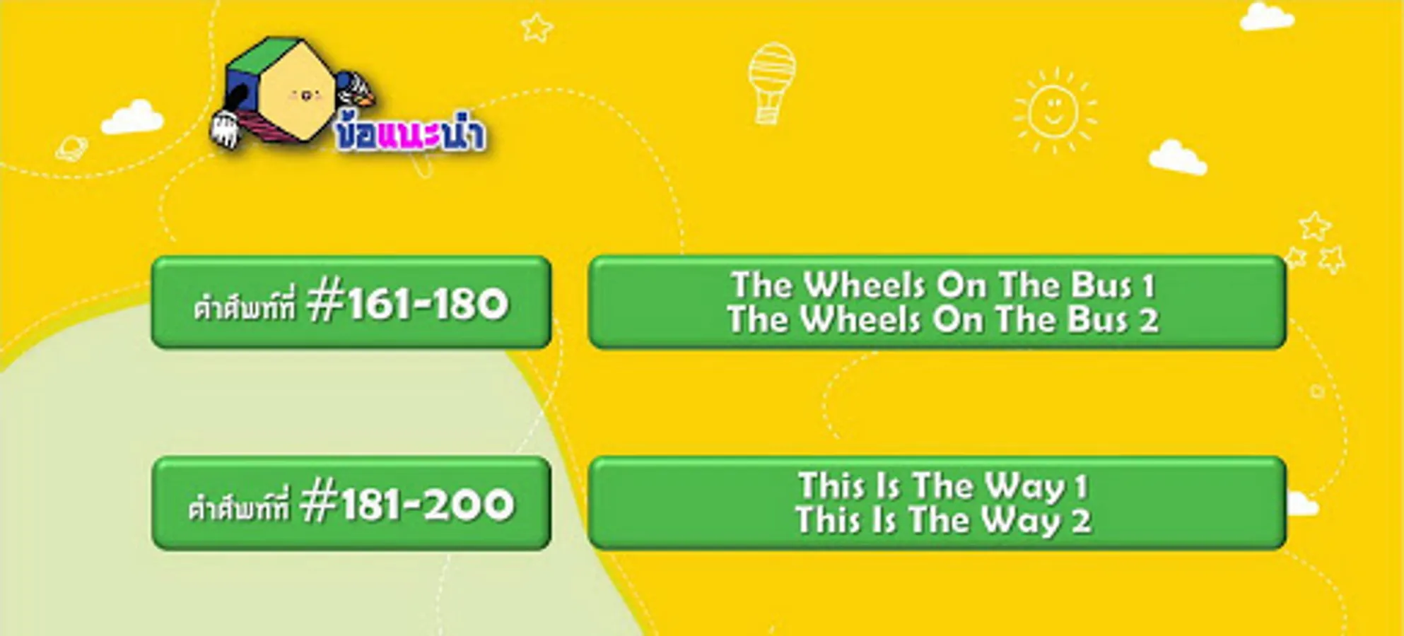 It has been proven that learning with rhymes is good for memorizing. and can be remembered for a long time and can be used with research backing in line with the ministry curriculum Helps to increase vocabulary power quickly. Suitable for young children who are beginning to practice speaking. Kindergarten children starting school Elementary school children who start reading and for adults who want to learn with children in a fun way