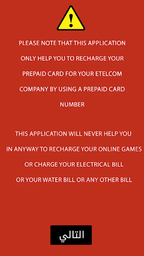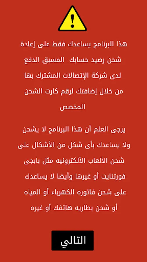 ** البرنامج لا يشحن لك رصيدك مجانى وأنما يحتاج الى شراء كارت مسبق الدفع من مزود الخدمه الخاص بك **