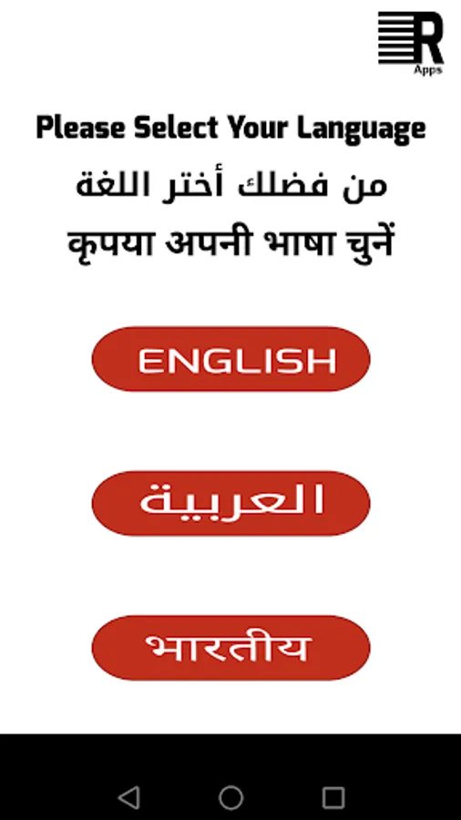 1- اختر اللغة ( عربى - انجليزى - هندي )