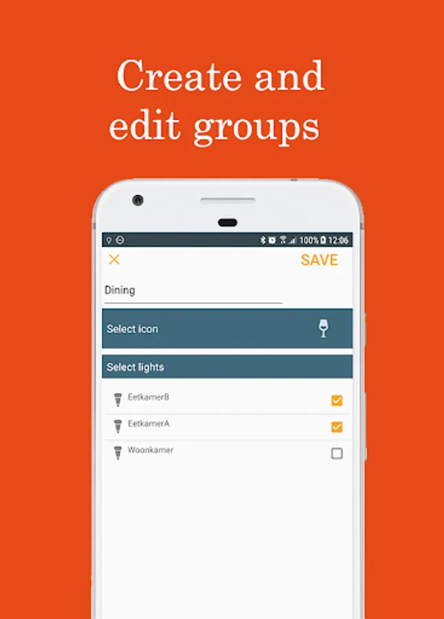 - Select lights for all your rooms. Lights can even be placed in multiple groups.