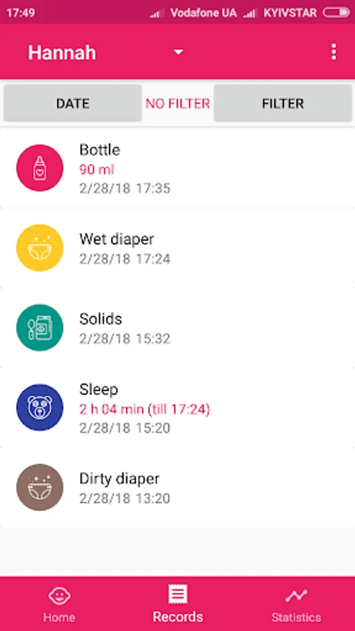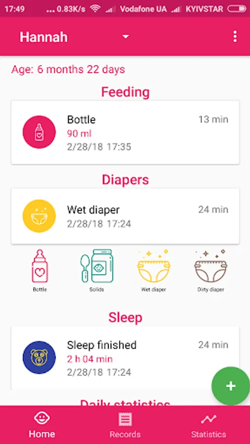 Easy to use baby tracker app for bottle-fed babies. Save info with just one tap!