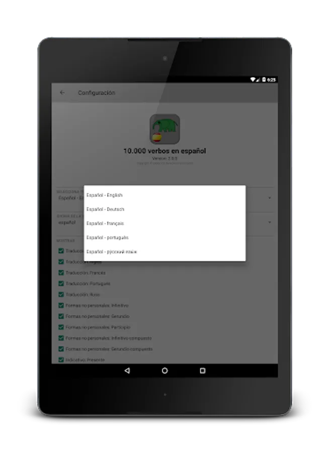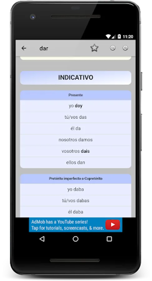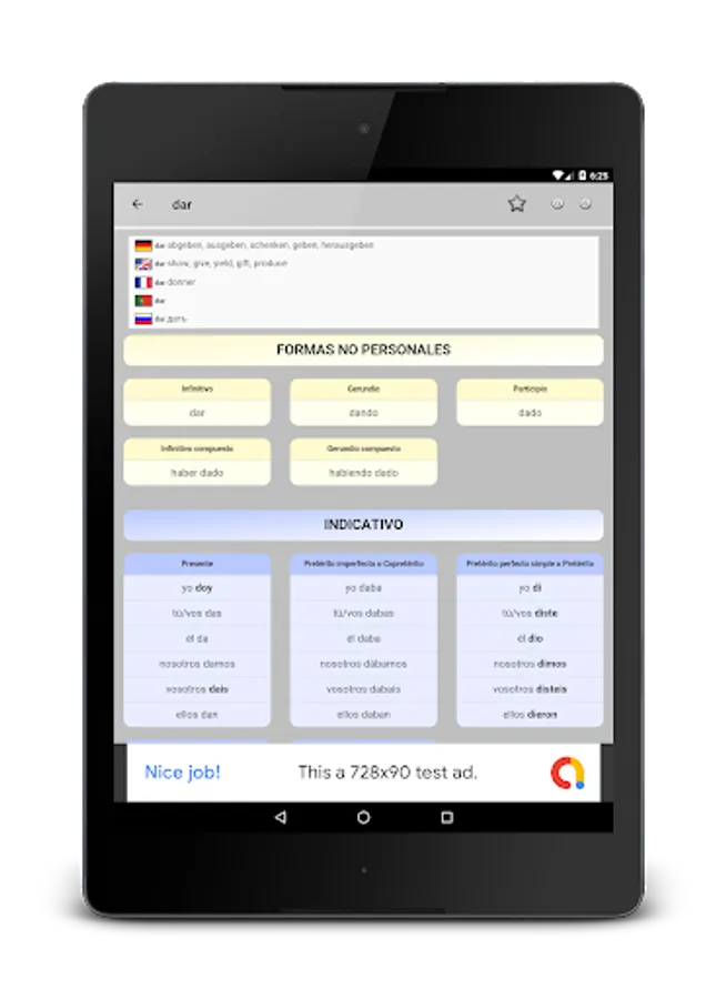 Complete verb conjugation tables of more than ten thousand Spanish verbs. Offline and free.
