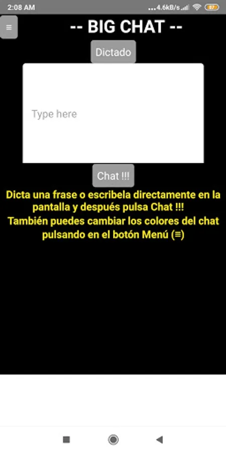 How many times have you been left with the desire to say something to that person who is only a few steps away from you, so that it does not happen to you anymore, with Bigchat you can talk even if you do not know this person or do not have their phone number, just dictate or type in what you want to make known and press CHAT !!!.
