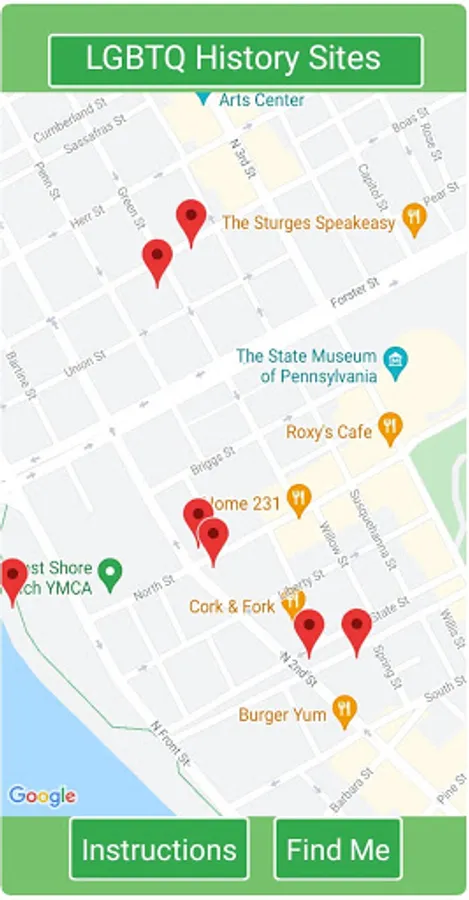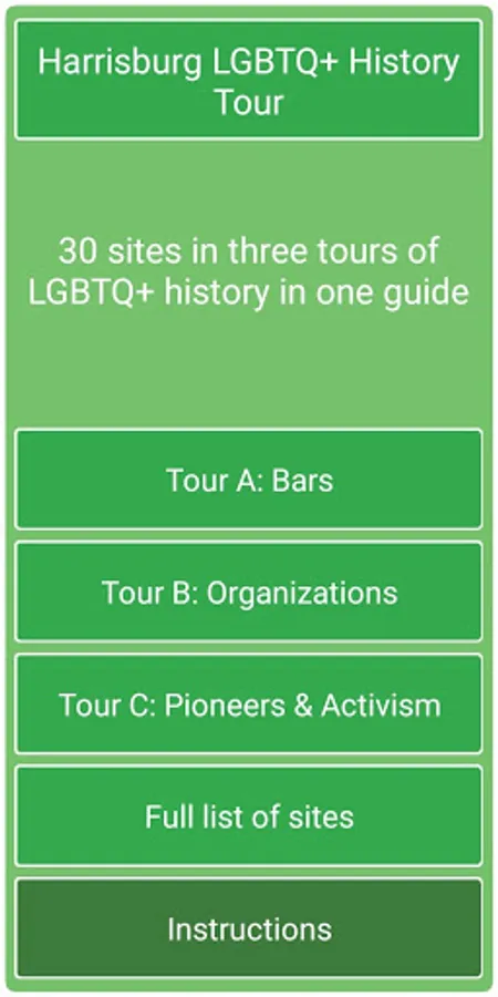 30 sites in three tours of LGBTQ+ history in one guide, With an interactive map, hisorical info and photos. This guide is brought to you by the LGBT Center of Central PA’s History Project. Our Mission: To engage people to discover, document, collect, preserve and present the history of the LGBTQ+ community in central Pennsylvania through oral histories and material culture.