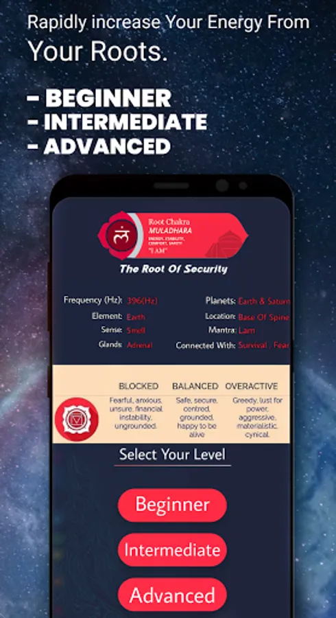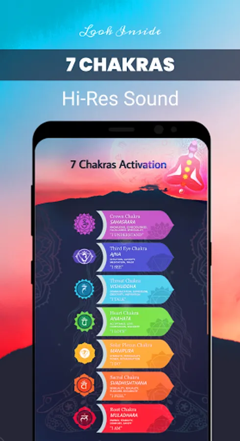 ✔️ “7 Chakra: Brain Waves, Binaural Waves, Free Meditation Music App” has mantras and Binaural Beats Meditation Music App for opening each chakra.