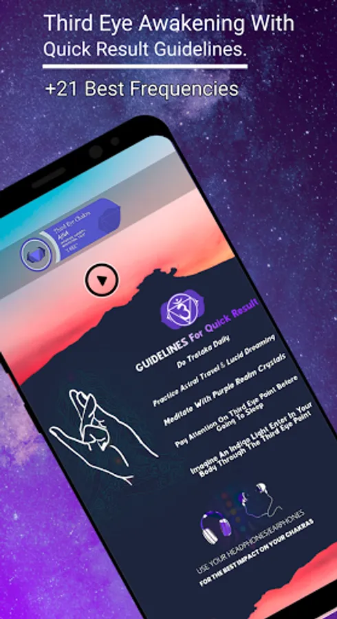 ✔️ With the help of “7 Chakra Healing App: Music for Brain Relaxation (Binaural Waves)”, open your third eye and crown chakra.