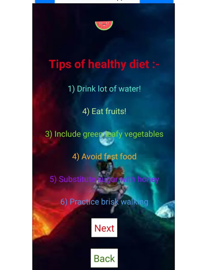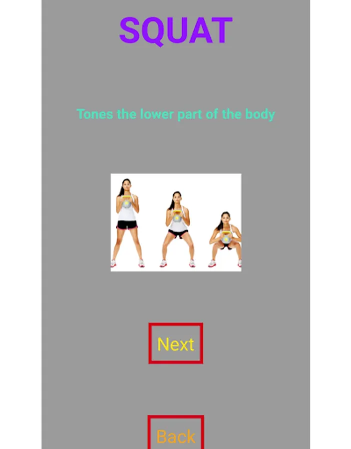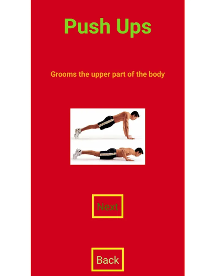 In this app there are 5 Exercise And at last there is helpline screen. On top there is helpline button when you click on that you can send message for any problem or when you long click on that button you can call .
