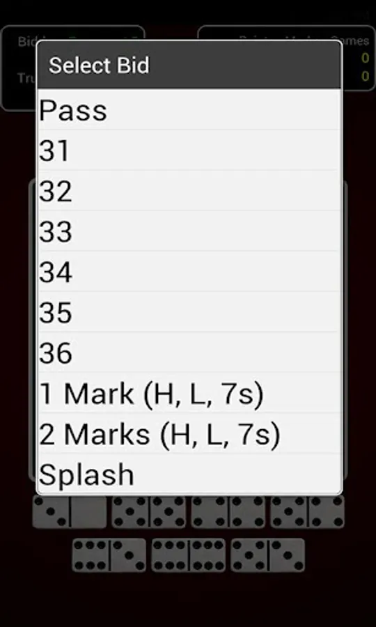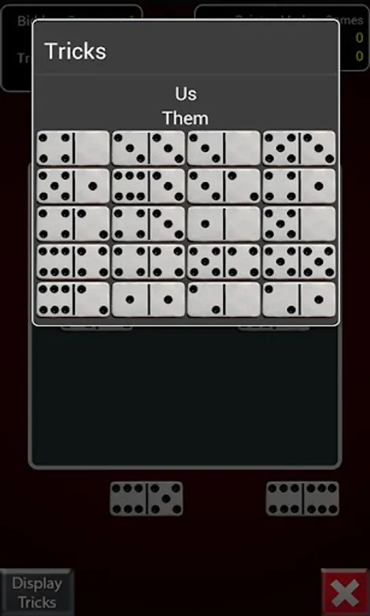 Within the trick dialog, tapping any domino or hidden trick icon will display all played dominoes.