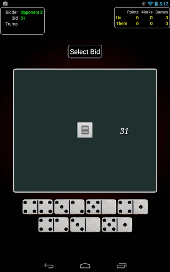 If you are the high bidder, an undo icon appears. Tapping the icon will undo the last bid, trump, or contract selection.