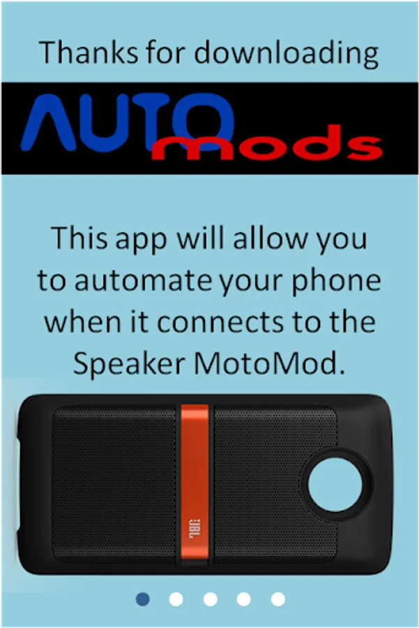 This Speaker AutoMod App will allow you to choose what settings your phone goes into when you attach the JBL Speaker Moto Mod:
