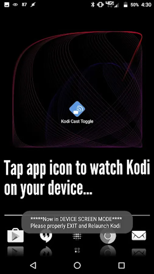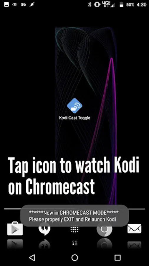 Sounds like a pain to switch from Chromecast to Device Screen and back again? Well no need to fret! Kodi Cast Toggle is here! Just download this widget (which is really just a toggling widget - no app interface), and tap the widget whenever you want to change from casting videos to your Chromecast or watch them on your device! Simple as that!