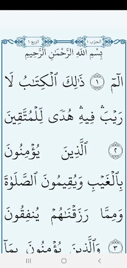 1- The Qur’an is written (you can change the font size, lighting, and font type as well)