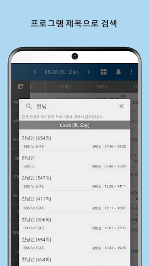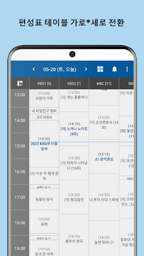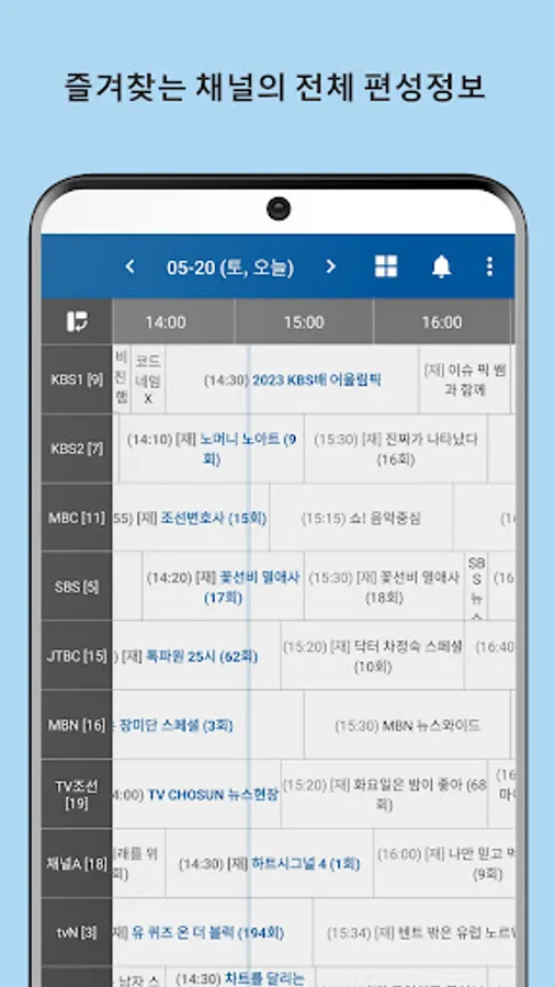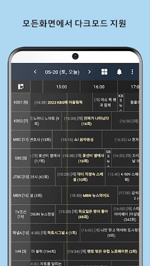 You can easily check the broadcasting schedule of almost all TV channels in Korea at a glance.