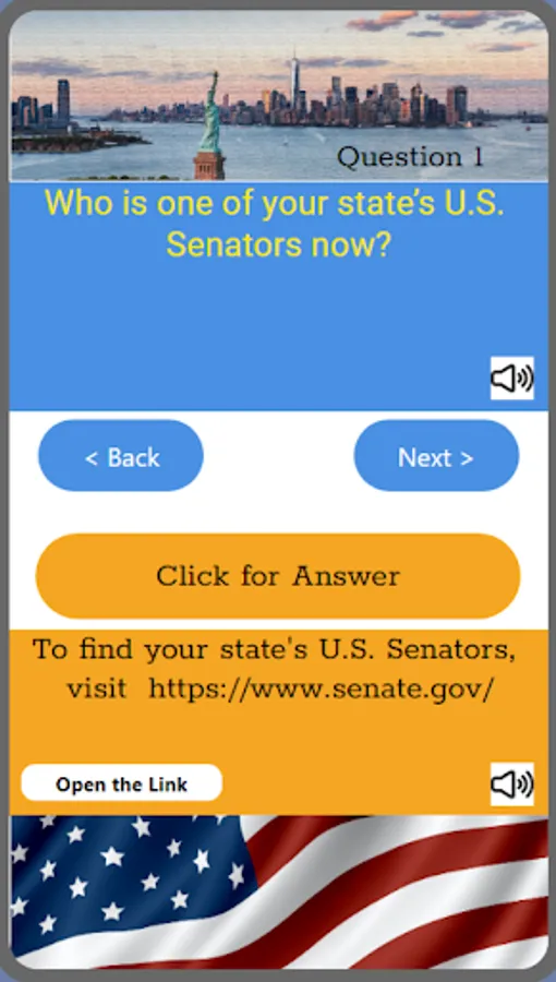 The questions in this App cover official 100 questions of important topics about American government and history.