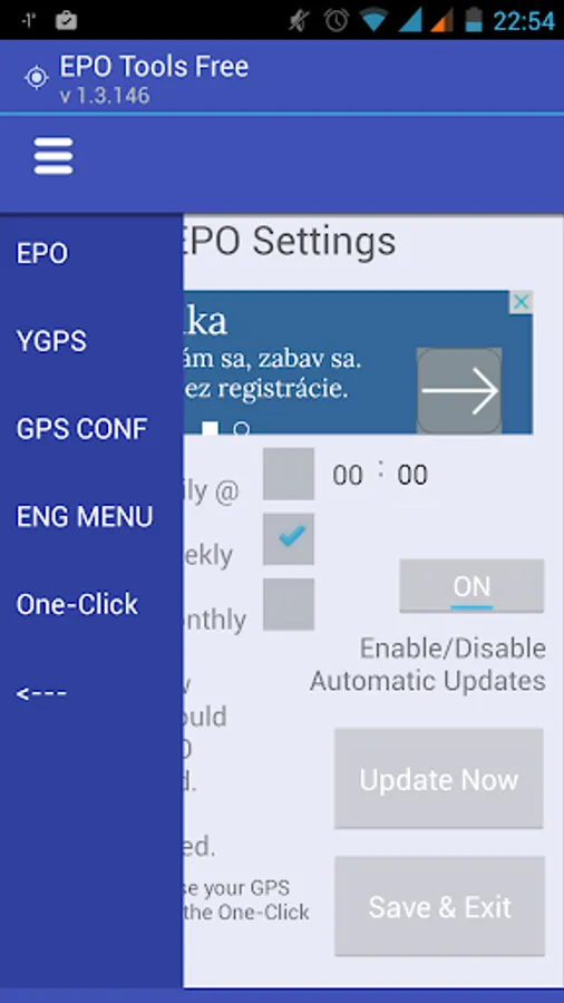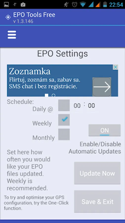 This application enables you to automatically download the EPO files on a daily, weekly or monthly basis if you would like to do so without any interaction required.