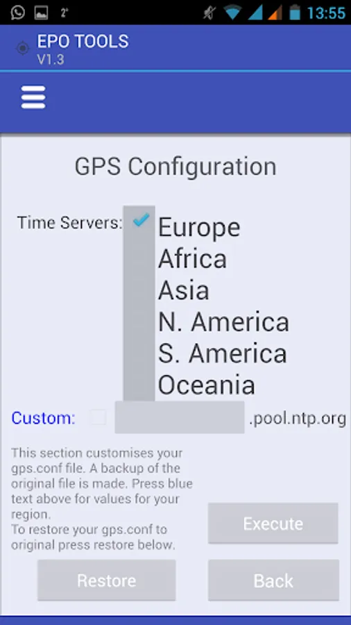 *Updates your gps.conf file with NTP time servers appropriate for your region.