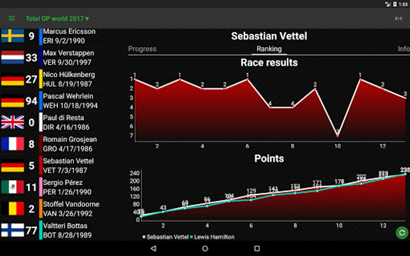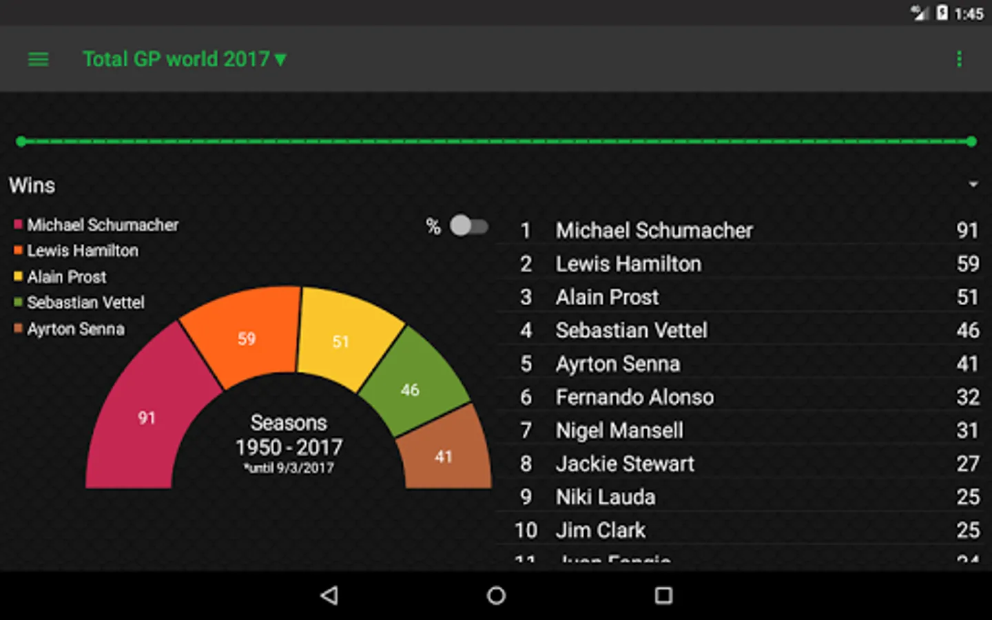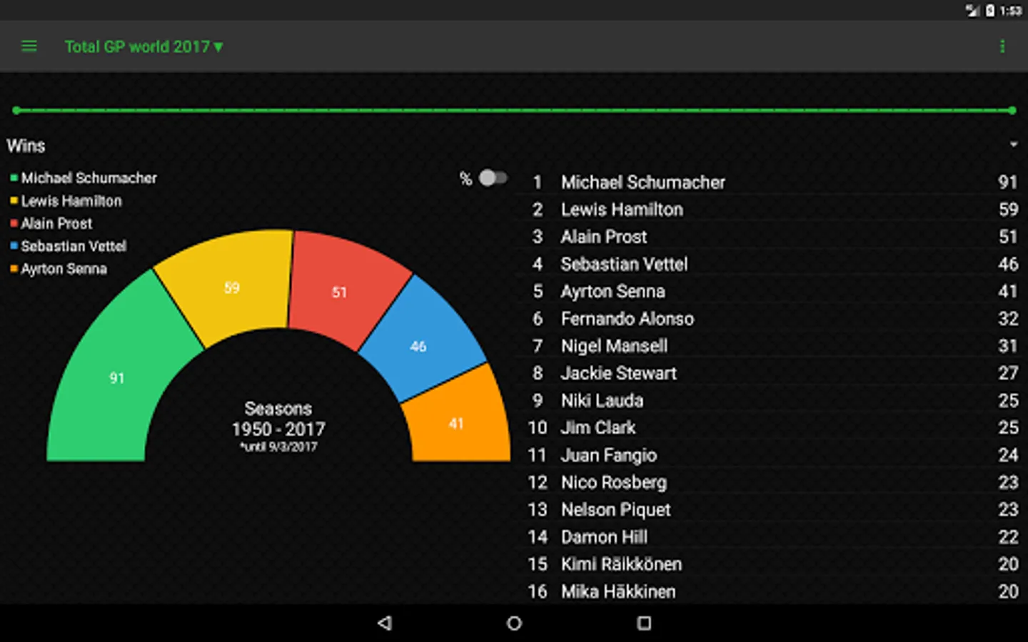 With Total GP world you will have all the informations about formula 1 you need: results, rankings, updated timetables and comparisons from the season 1950 to the present.