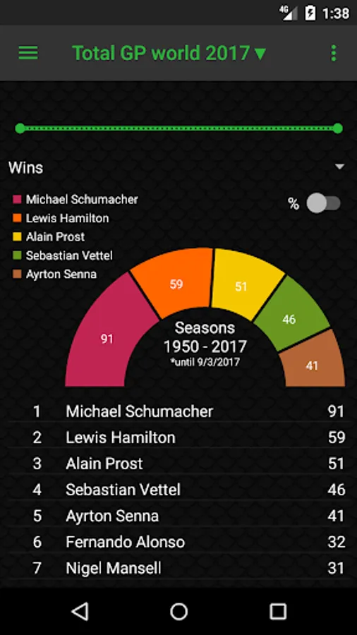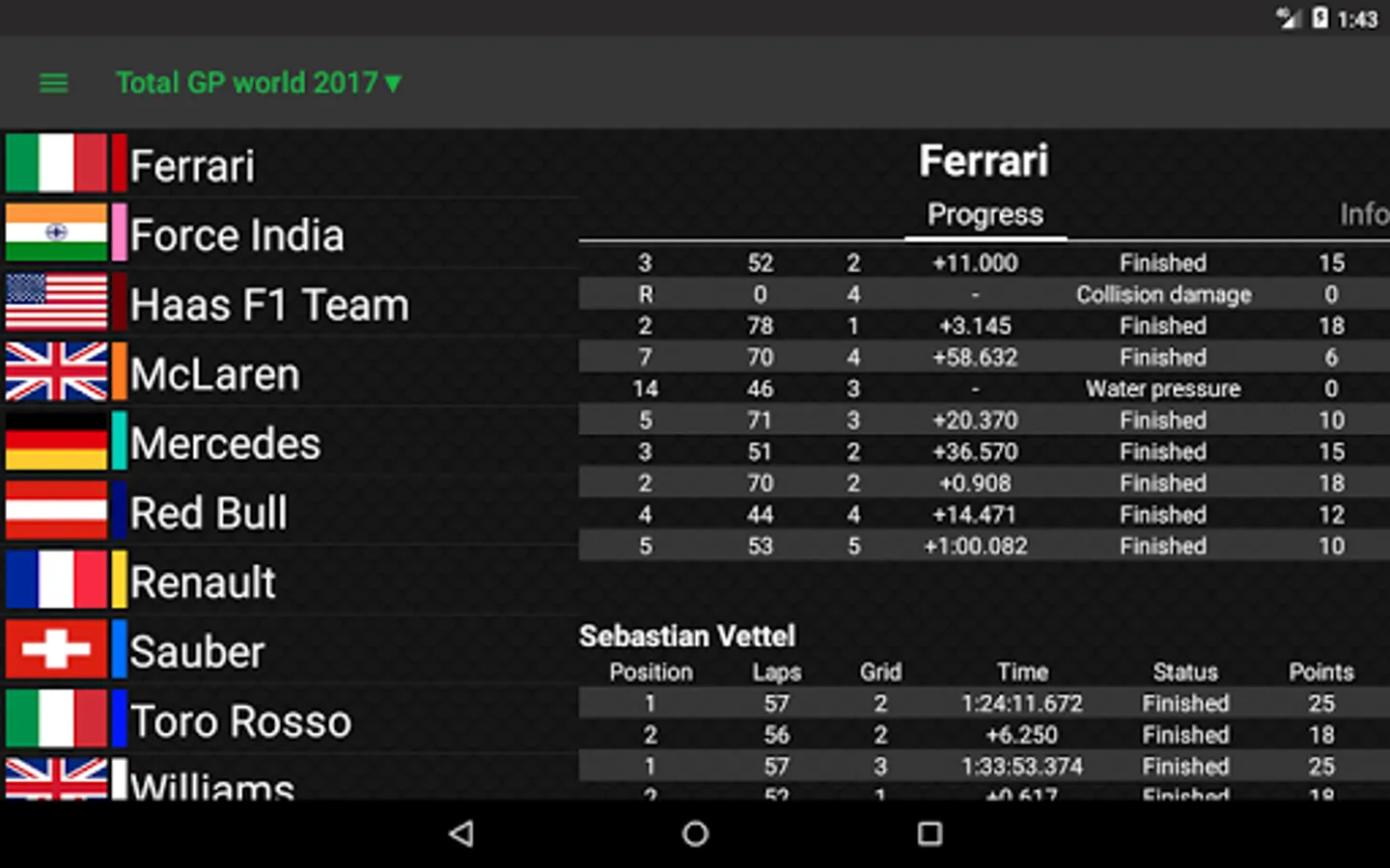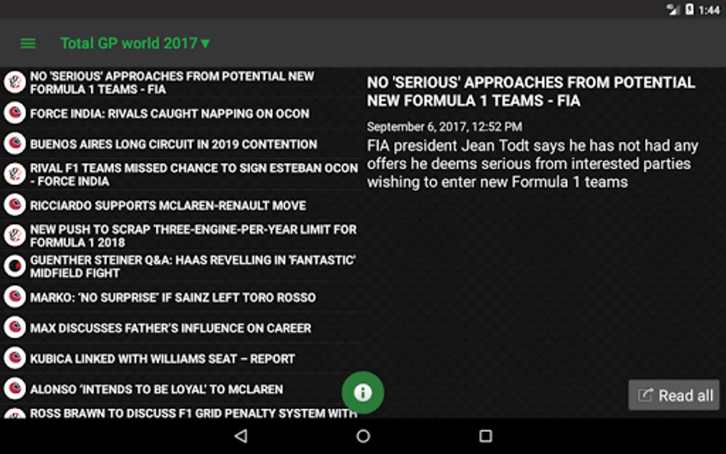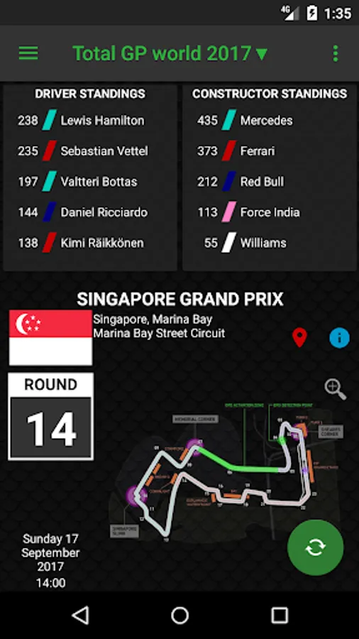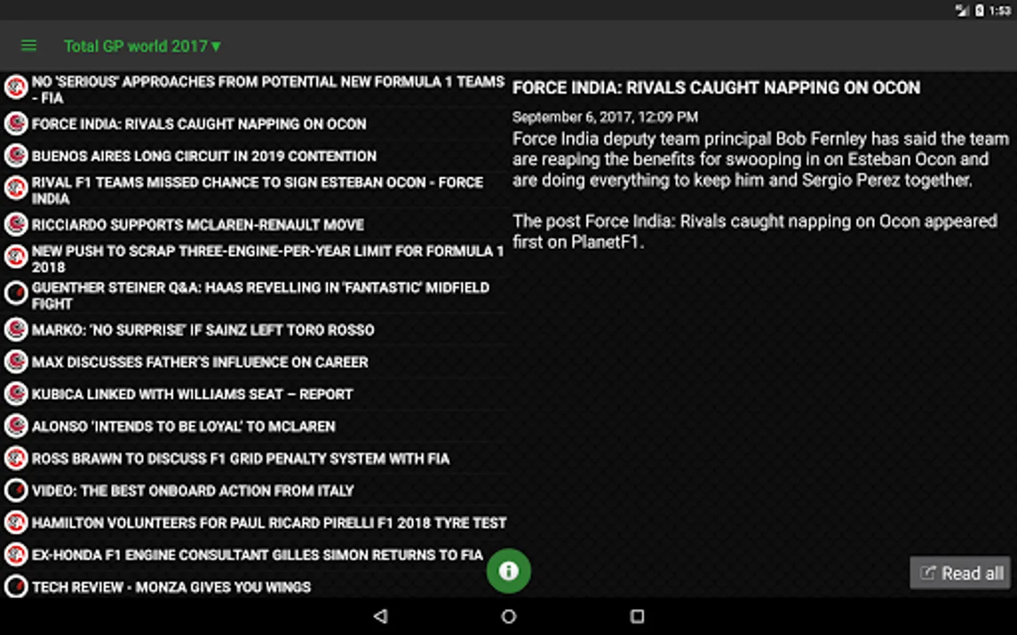 With Total GP world you will have all the informations about formula 1 you need: results, rankings, updated timetables and comparisons from the season 1950 to the present.