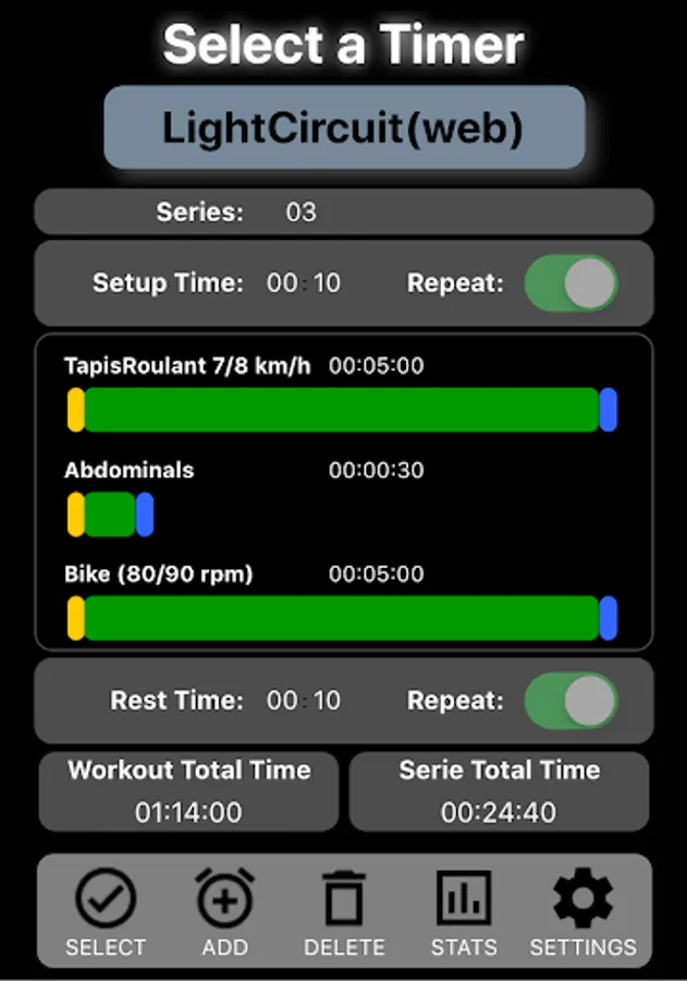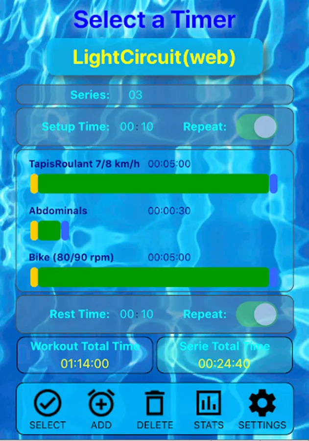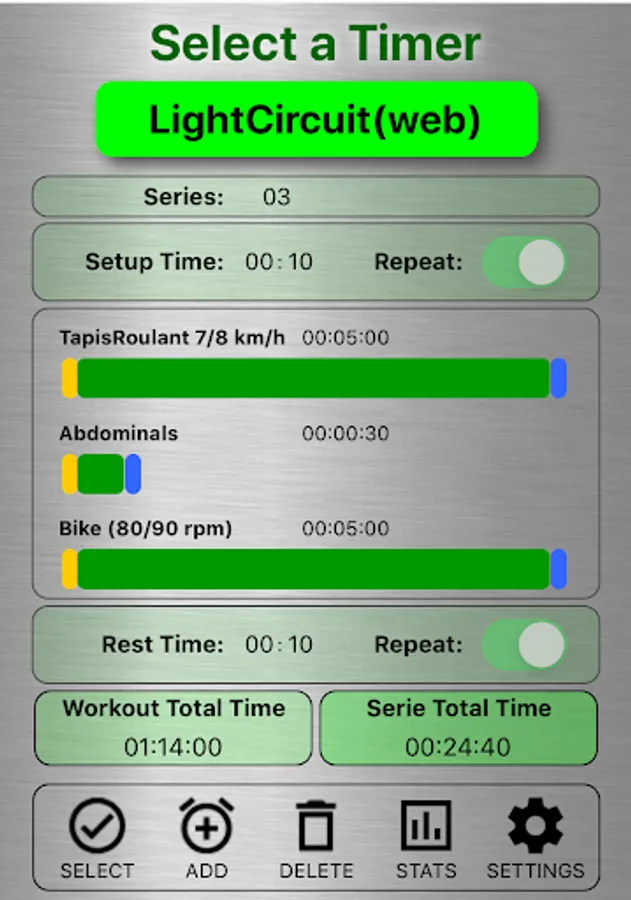 The application allows you to easily create a timed training scheme. Up to 8 exercises are available for any serial number you wish. Each exercise is configurable with a name, a setup and rest time. The free version manages only one timer while with the paid version the user can configure themes, timer colors and download from the site timers ready to use after registering an account. There is no advertising or In-App purchases