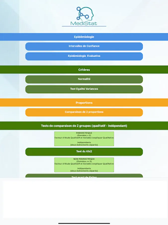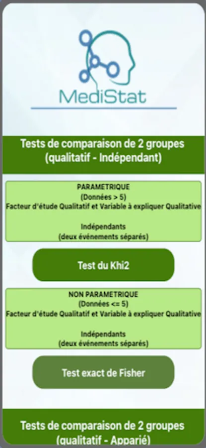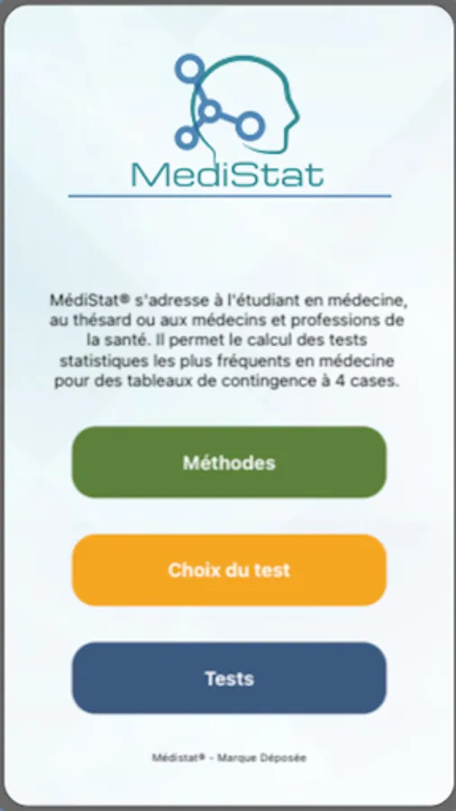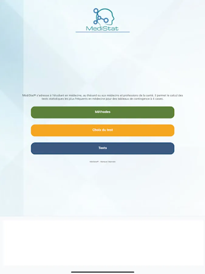 MédiStat® is aimed at medical students, PhD students or doctors and health professionals. It allows the calculation of the most frequent statistical tests in medicine for contingency tables with 4 boxes. Quick performance of tests on portions, Chi2, Student statistical tests, F Snedecor, Fischer... Help in choosing the best statistical tests.